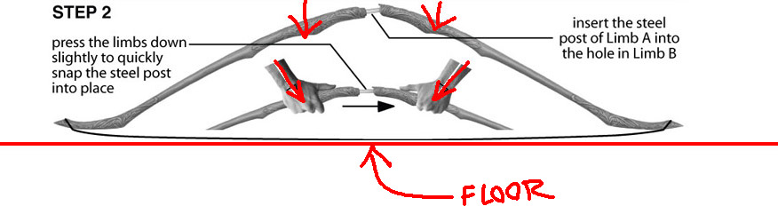 DO NOT TRY TO STRING THE BOW LIKE A “NORMAL” BOW WHERE THE STRING GOES ON LAST. WATCH THE VIDEOS