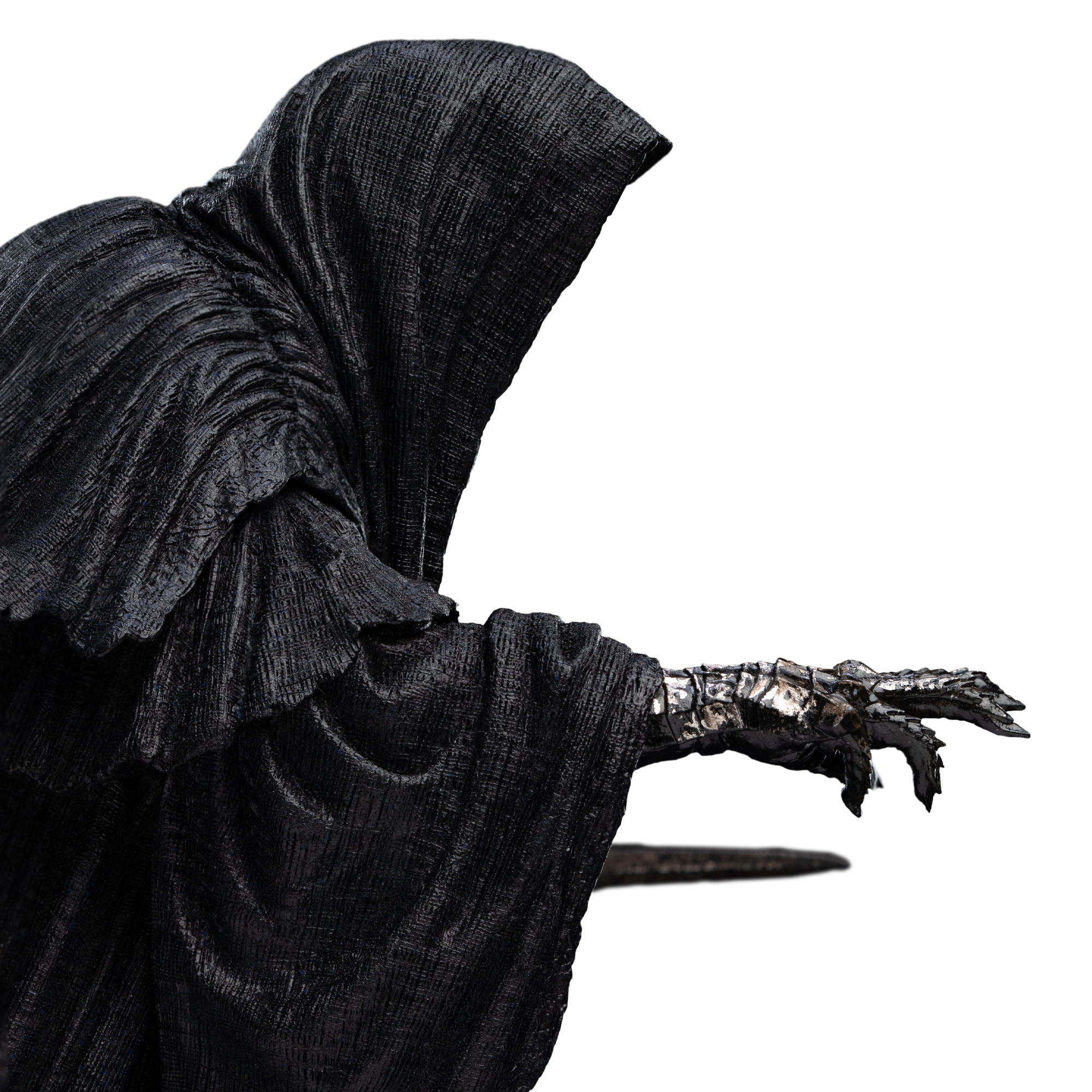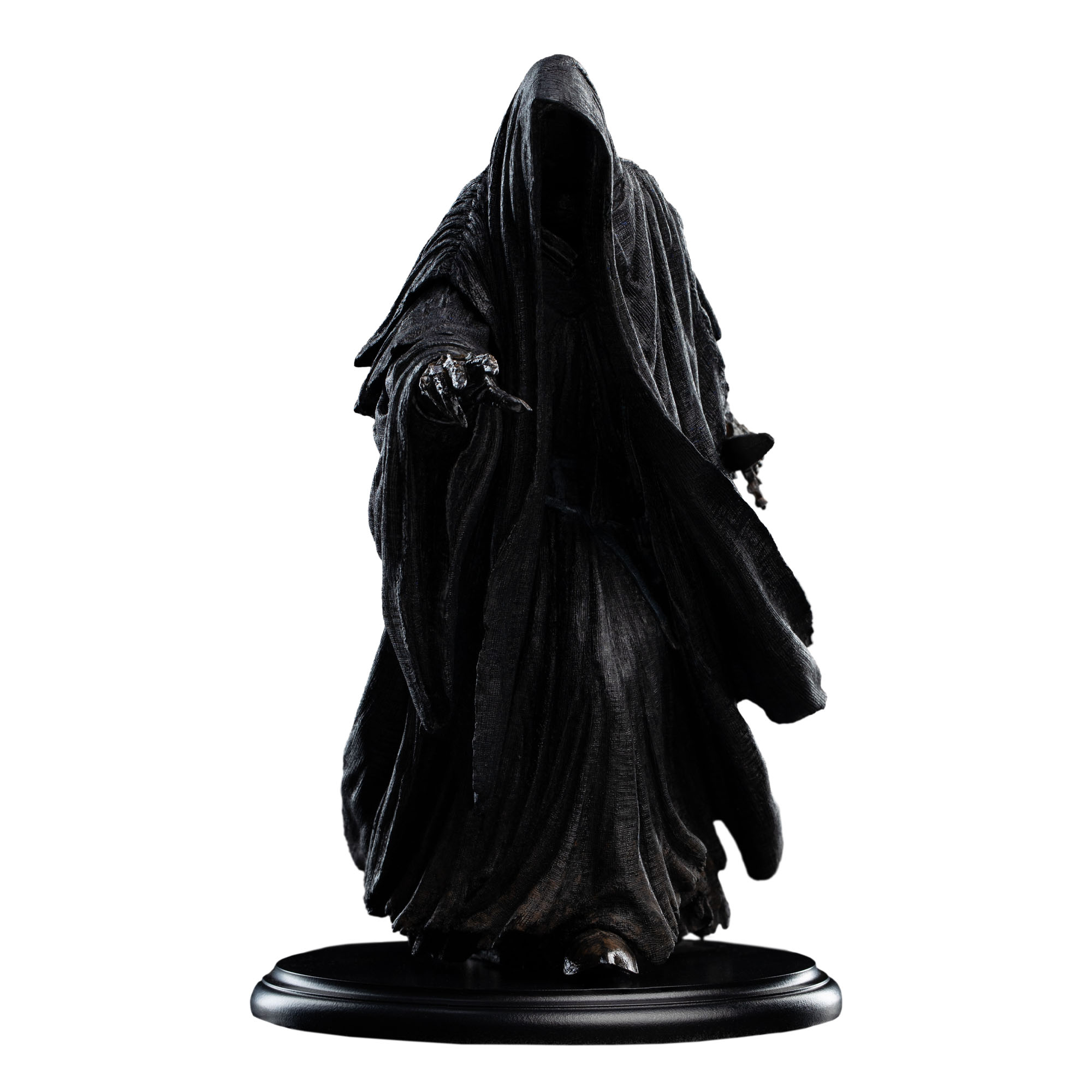 Our artists bring exceptional narrative clarity to this compact form. The flowing, unnatural drape of the cloak suggests movement without wind; the posture is poised between stealth and violence. Fine textural detailing across the armour, wrappings, and weathered blade rewards close inspection, while the elongated silhouette and restrained composition preserve the Ringwraith’s inhuman menace.